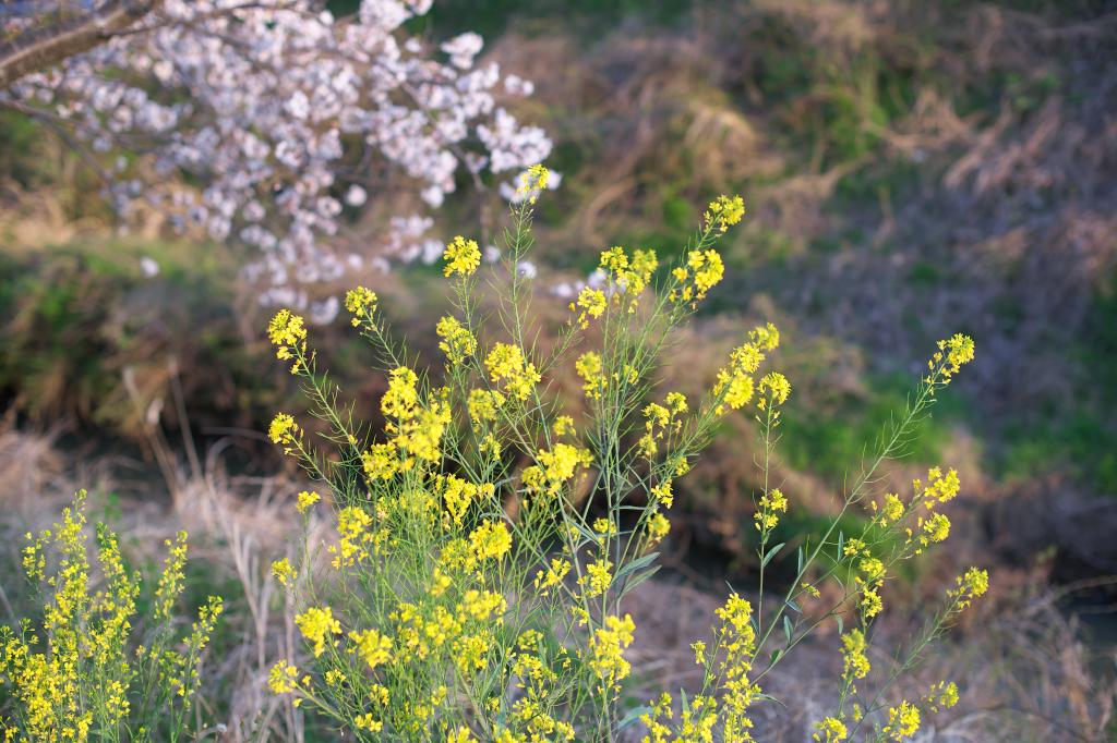 菜の花はもっと早いのですが寒さのせいか桜とコラボです。